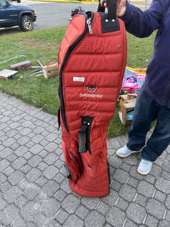 Samsonite Softside Golf Travel Bag w/ Wheels Black Padded Cover Golfer Luggage. Missing Should strap. Needs to be cleaned. Slight rust on hardware.