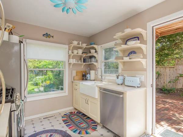 When your stomachs start to rumble, head outside to the English-style garden and pick some fresh herbs for supper. Feel free to utilize the fully equipped kitchen complete with stainless steel appliances to prepare a delicious meal. Eat in the dining room or wander outside to the yard to dine al fresco.