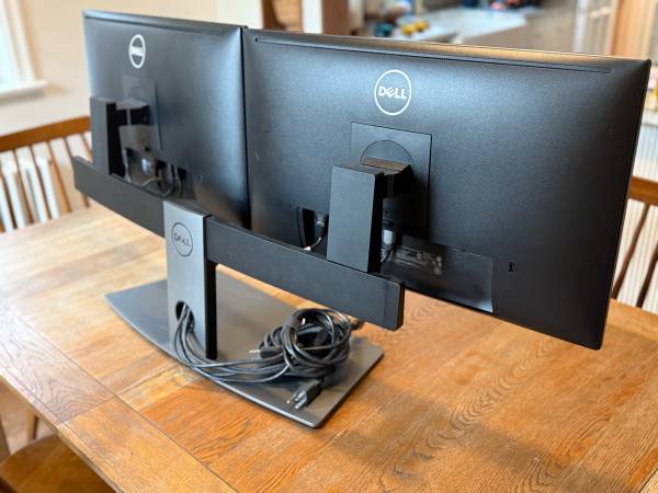 Two Dell Monitors with stand. Each monitor = UltraSharp 25-Inch U2515H Stand = DELL Dual Monitor Stand MDS19 Speaker = Dell USB Wired SoundBar AC511