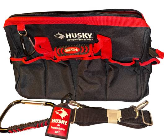 Top of the line Husky tool bag 16 x 10 x 12" height Unused with light shelf wear Tools