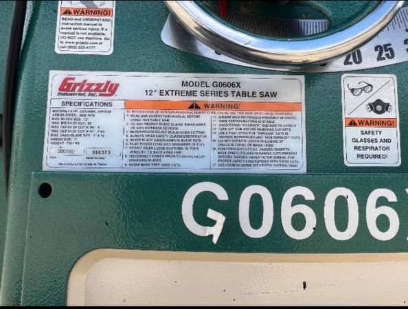 Grizzly 12" Extreme Series Table Saw Model G0606X Comes with dust collector. Very Heavy duty commercial grade table saw. Low use in good working condition. Delta, craftsman, kobalt, ryobi, skills,...