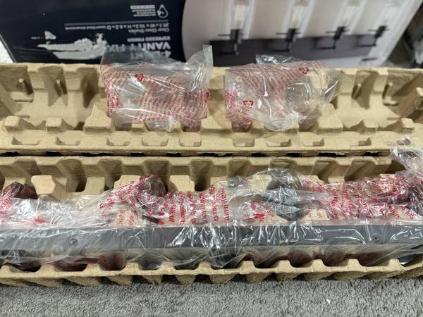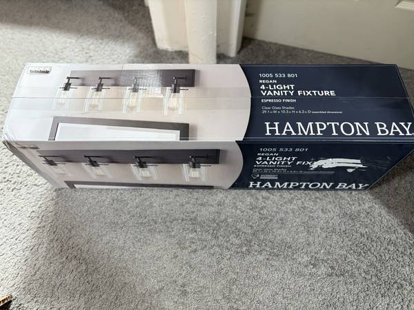 *NEW* VANITY LIGHT FIXTURE WITH 2 BROKEN GLASS SHADES. OTHER 2 GLASS SHADES INTACT. NEVER INSTALLED BOX NEW.