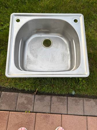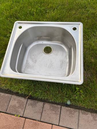Used Frankie sink. Measurements are 25" x 22", 9.5" deep. Just needs some cleaning. No dents.
