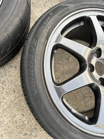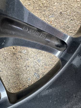 Selling a set complete set of OEM Acrua/Honda NSX wheels with tires. They were on a 2000 Honda NSX before. Wheels were re-powder coated to gunmetal grey a few years ago. Minor scuffs from storage. Wheels have no bent, cracks, no curb rash. All wheels are balanced and ready go to. No center caps included. These wheels are super rare especially in this condition.