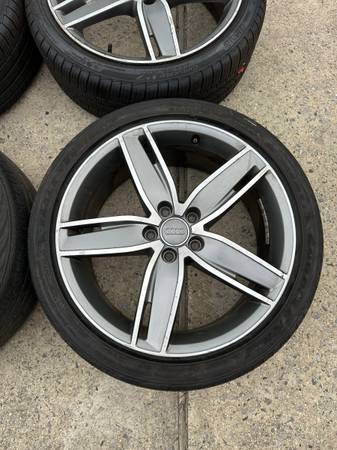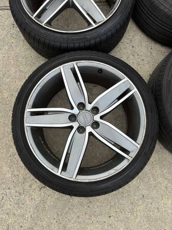 Selling a set of (4) S3/A3 OEM factory 19” wheels. They are off a 2017 S3 (good condition with curb rash, see pictures). Comes with all OEM center caps. We switched to aftermarket right after we got the car. All wheels are balanced and ready to go. They were used as staggered setup on a older Audi wagon. Rear tires wider than the front. Will come with spacers and lug bolts as a complete set. Wheels can use cleaning up. Has some brake dust.