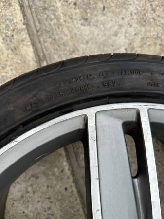 Rear : (1) Continental ContiPro Contact - 235 40 19 - 50 tread left. (1) Goodyear Eagle Tour - 235 40 19 - 80-85% tread left.