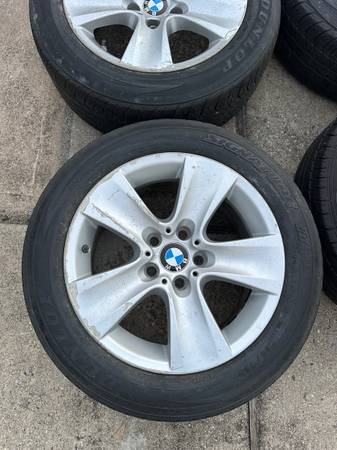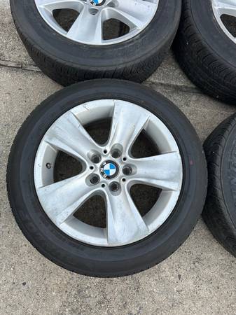 Full set of (4) Genuine OEM BMW 17" Style 236 Wheels with almost new tires. Will come with OEM center caps, OEM TPMS and BMW wheel lock lug nuts. They are off a 2013 F10 550i Xdrive. No bents, no cracks. They are in great shape with minor curb rashes. Please see pictures. All wheels are balanced and ready to go.