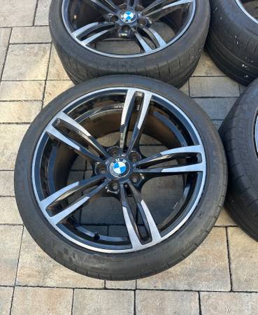 Selling a set of M3 19" OEM style 437m wheels (set of 4) with tires. They were used on a 2019 M4 F82. Wheels are in good condition without any bent or cracks. All matched Michelin Pilot Sport 4S. Wheels have minor curb rashes on two wheels. See picture. Will only come with center caps and regular valve stems. Wheels can use a nice deep clean from the dust.