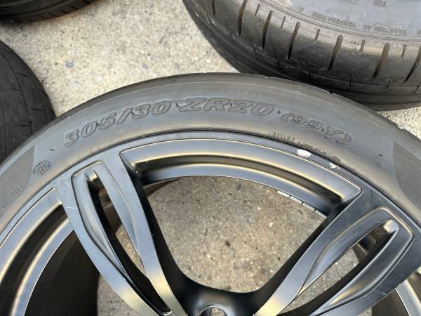 Rear: (2) matched Pirelli P Zero Trofeo R - 60% tread left. 305 30 20. These are 5/32" tread when new. these have between 3-4/32 left on them. These tires were $700 dollars each when new.