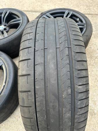Front: (2) matched Pirelli Pzero PZ4 - 60-70% tread left. 275 35 20. Two front tires have bubbles. Should be replaced.