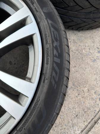 Tires: Front (1) Lexani, (1) Federal Couragia. Both are 275 40 20 - 90% tread left. Rear (2) matched - Lexani - 315 35 20 - 75% tread left.