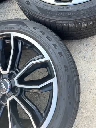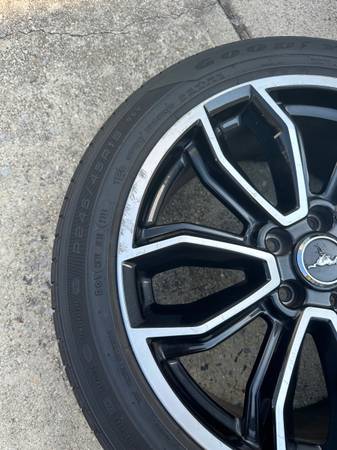 Selling a set of (4) Mustang GT factory/OEM wheels. They are off a 2014 Mustang GT Premium. Wheels have some minor curb rash. See pictures. Overall, they are in good shape. No bents no cracks. Wheels come with TPMS, center caps, tires.