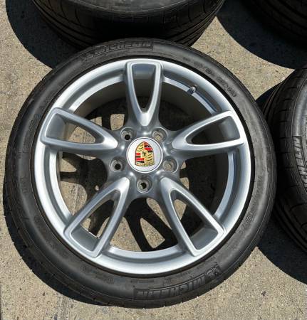 Rear Wheel: Part #: 99736214105 Size: 10Jx 18 Offset: 60. Rear Tire Size : 265/40/18 - Michelin Pilot Pilot Sport 4N - 95% tread left. Need replacement. But hold air.