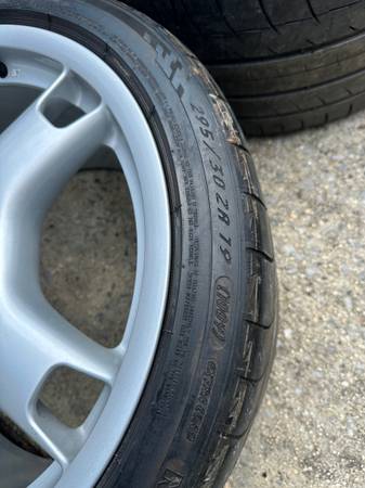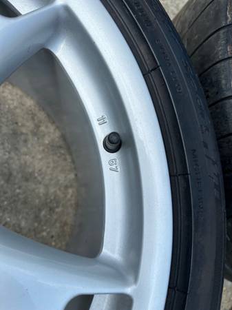 Rear Wheel: Part #: 99736216201 Size: 11Jx 19 Offset: 67. Rear Tire Size : 295/30/19 - Michelin Pilot Pilot Sport 4N - 90% tread left. Need replacement. But hold air. All tires are older and have dry rot.