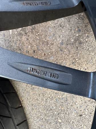 Rear Wheel: Part #: 99136216630 Size: 11Jx 20" Offset: 70mm. Tire Details: Nitto NT555 G2 305/30/20" 80% tire tread. All tires have DOT year 2019. no dry rot, no cracking. no issues.