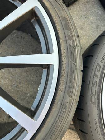 Front Wheel: Part #: 99136216130 Size: 8.5Jx 20" Offset: 51mm. Tire Details: Kumho Ecsta PS91 245/35/20". 80% tire tread. All tires have DOT year 2019. no dry rot, no cracking. no issues.