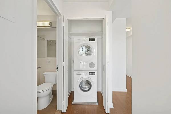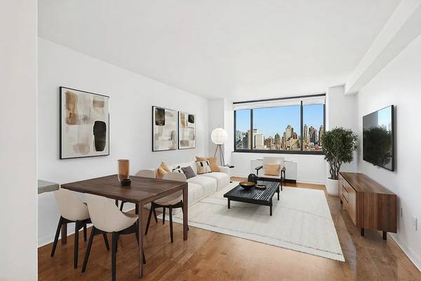 This renovated two-bedroom residence features hardwood floors, high ceilings, and generous closet space throughout. Located on a high floor, the home offers north-facing city and river views that capture the best of New York living. The modern kitchen includes Caesarstone countertops and stainless steel appliances, combining sleek design with everyday functionality. Perfectly situated near all major dining, shopping, and transportation options, this home offers both style and convenience in one of Manhattans most dynamic neighborhoods