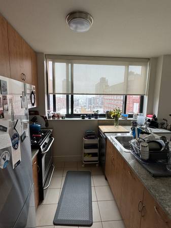 Building is in a great location (corner of 55th and 9th) across from Alvin Ailey Center, which faces West with river views and North. One of the only units in the building with a W/D in unit, also dishwasher, new appliances, lots of closet space. No Fee! Can also renew/extend the lease if desired.