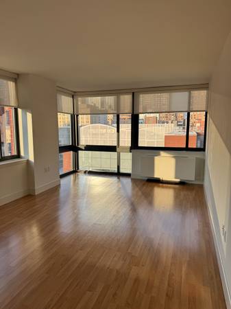 Great location (55th and 9th) across from Alvin Ailey Center, that faces West with river views. One of the only units in the building with a W/D in unit, also dishwasher, new appliances, lots of closet space. This is a competitive price below market with my offer . Building has full time doorman, bike storage, additional laundry room, gym, business center, and patio with grills. No FEE!! Process can be completed within 24 hours.