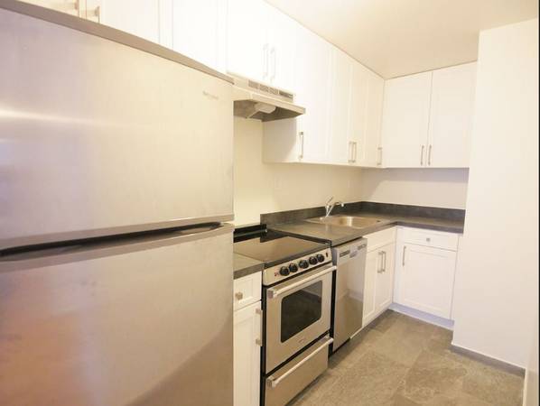 The unit is technically a 1 bedroom but has another space that can service as a home office or another bedroom. Three huge closest with central heating and AC and a full kitchen including a dishwasher.