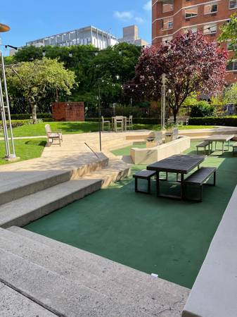 Outside shared space including Basketball court and tennis court, chairs to sunbath etc