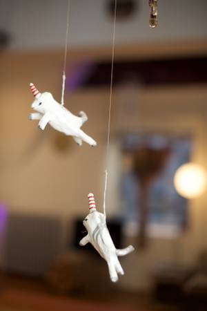 * Inviting living space with warm furnishings, including a couch, recliner, and zafu-style floor cushions & pouf perfect for meditation or lounging, accented with eclectic art and designer touches.