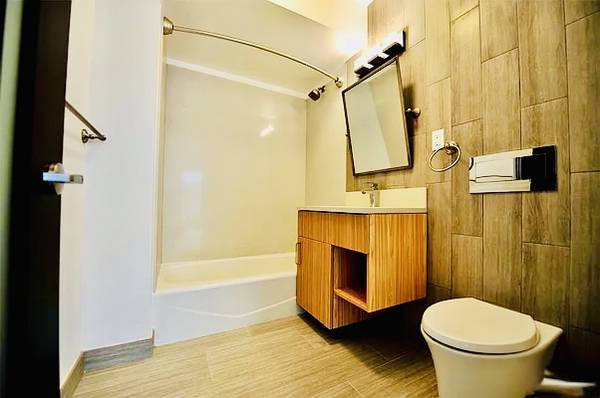 The bathroom includes a soaking tub and a gorgeous standing shower next to the elegantly designed vanity sink mounted to the granite tiled back splash! Other features of the lovely apartment include quiet fully insulated windows, WASHER/ DRYER IN BUILDING, and remote controlled central air-conditioning and heat.