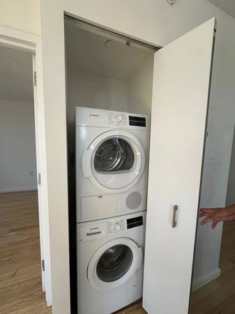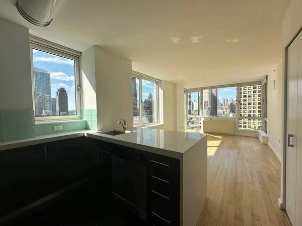 Dramatic floor-to-ceiling windows and glass curtains fill the apartment with abundant, natural light. The open kitchen with polished Caesarstone countertops, stainless steel appliances and custom cabinetry are a place for your inner chef to draw inspiration. Cool and sensuous baths feature Kohler fixtures and graphite oak vanity sets against smooth marble and chrome finishes. Plenty of closet space throughout. In-unit washer and dryer make laundry time easy.