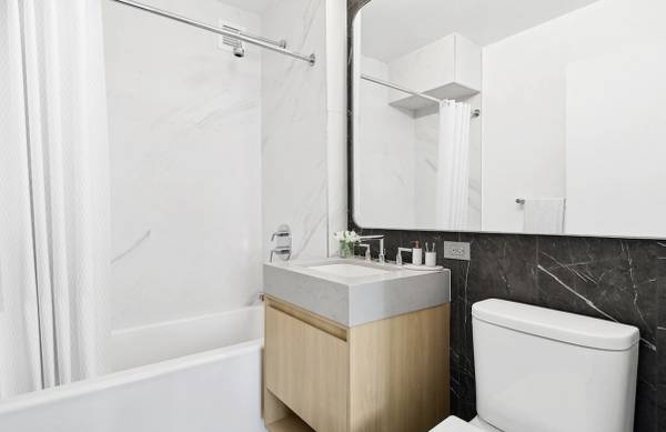 Welcome to 1510—a stunning Flex-1 Bedroom that redefines downtown living with style, space, and skyline views. Perched on a high floor, this sun-soaked home features oversized windows, lofty ceilings, and a smart, flexible layout that easily adapts to your lifestyle. Whether you need a second bedroom, a dedicated home office, or a private studio, the open design offers endless possibilities, all wrapped in sleek modern finishes and rich hardwood flooring. The gourmet kitchen is outfitted with stainless steel appliances, granite countertops, and custom cabinetry, flowing seamlessly into a spacious living area perfect for entertaining or unwinding. A spa-inspired bathroom invites you to relax with premium fixtures and a deep soaking tub, while generous closet space keeps everything neatly tucked away. As a resident, you’ll enjoy access to an array of top-tier amenities including a 24-hour doorman, rooftop sundeck with sweeping city views, state-of-the-art fitness center, resident lounge, children's playroom, valet services, and an on-site laundry room. All this in the heart of the Financial District—where the energy of the city meets the comfort of home. Stepping outside the door reveals a world of amenities that turn everyday life into indulgent ease. A 24-hour doorman and concierge greet you, while valet parking and an attended garage take care of practicalities. Wellness becomes a daily ritual in the glass-enclosed heated lap pool and spacious, state-of-the-art fitness center with yoga room. Relaxation takes form across thoughtfully curated spaces—imagine lounging in the club room with billiards or screening area, unwinding in the solarium that seamlessly blends indoor and outdoor lounge and dining zones, or stepping onto the lush rooftop solarium featuring a gas fireplace, wet bar, and catering kitchen. Green escapes are woven into the design: landscaped plazas, a garden with a running fountain, and a sunny sundeck invite moments of serenity above the city. For added convenience, there’s a children’s playroom, bike storage, lounge areas, package and mail rooms, in-building laundry, and Wi-Fi throughout common areas. A pet-friendly and smoke-free environment ensures comfort for all residents. Here, your Flex‑2 residence with one bathroom becomes more than an apartment—it’s both sanctuary and social hub, where flexibility, thoughtful design, and community converge seamlessly. Everyday routines are elevated, whether you're working, lounging, entertaining, or simply taking in downtown Manhattan from the height of luxury.