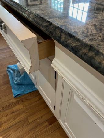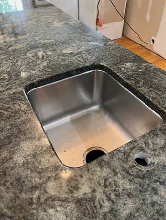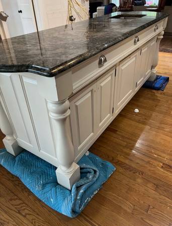 Custom one of a kind handmade kitchen island. All wood. No partical board whotsoever. Includes granite top and stainless undermount sink (prep size)