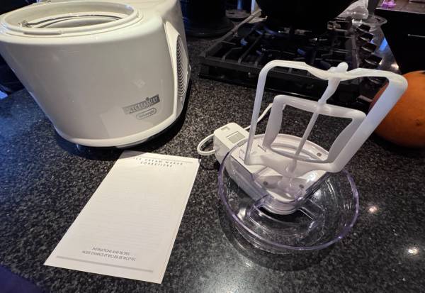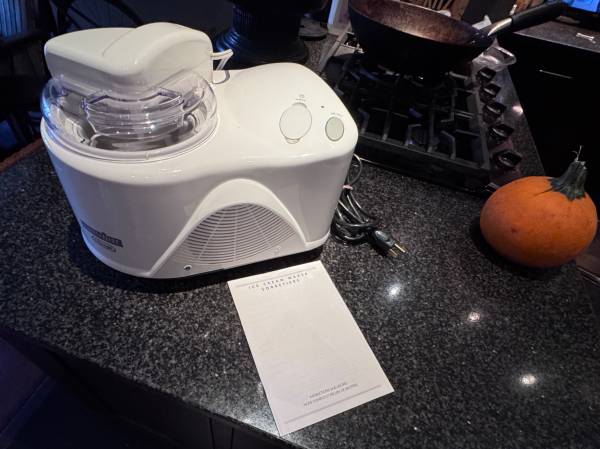 This is a great ice cream and gelato maker with a built in freezing unit. It is heavy. If you want ice cream tonight you can have ice cream tonight. For faster churning refrigerate the ice cream mix first. Do NOT freeze ice cream mix. If you choose not to chill the ice cream mix it can take up to 45 minutes to get the ice cream really hard. You can watch the churning and see it thicken. The motor is noisy. It has always been noisy so there is nothing wrong with the motor.