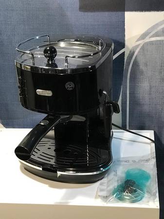 DeLonghi Icona Pump Espresso Machine (Piano Black/Chrome). Excellent working condition. Include new filter. Features steam frother on side, heated plated on top, and removable drip tray. Email to...