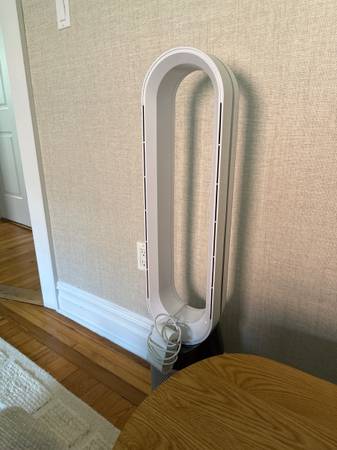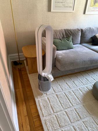 Works great. Has a small knick but otherwise perfect condition. Comes with remote or can be controlled through Dyson mobile app. Just needs replacement filter.