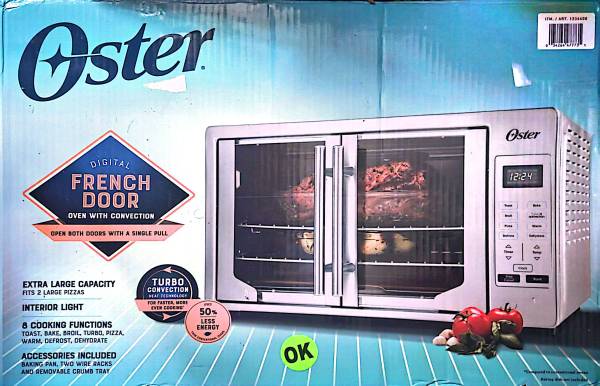 The Oster TSSTTVFDDG Digital French Turbo Convection Countertop Oven - Brushed Stainless Steel looks elegant, cooks with convection and makes meal prep easier. Unique design opens both doors open with a single pull so you can place dishes in the oven without hassle. Digital controls provide added convenience to bake, toast, broil, warm and convection cook in just one touch. Control panel also includes touch commands for pizza, dehydrate and defrost, as well as adjustable time and temperature settings. Theres no reason to turn up the heat with your conventional oven, as the Oster Digital French Door Oven cooks more efficiently, using up to 50% less energy, plus its extra large interior provides plenty of space to prepare full meals. Set the 90-minute timer to cook foods as long as you need, then the oven shuts off automatically. With a countertop oven this attractive, this efficient and this easy to use, youll enjoying using it for every meal you prepare! Dehydrate nutritious and delicious fruits and vegetables with the The Oster Digital French Door Ovens Dehydrate function. This oven control allows you to slowly cook your food at a preset temperature of 150F for an adjustable time of up to 6hrs. Just select the dehydrate function, set your time, push the start button and youre dehydrating! Its that easy!