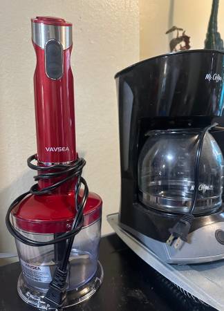 Like new. Vavsea Blender 5 in 1 handed 12-Speed Multi-Function Handheld Stick Blender. Excellent condition. Power: 1000watts. Perfect kitchen assistant. Used once. Please let me know if interested.