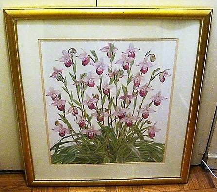 Angela Mirro Framed Orchid Print – Hand Signed $65 Cash Only Image from painting of a Phragmipedium Schlimii 'Wilcox' Orchid Hybrid Measurements: Height: 29 - 1/4” Width: 26 - 1/2”