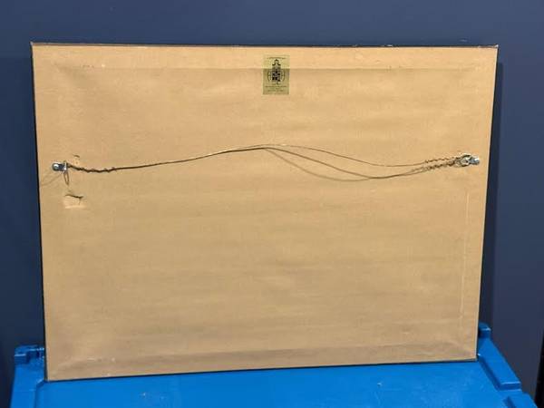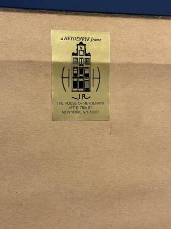Features decorative black wood frame with gold etch, mat, and UV anti-glare glass.