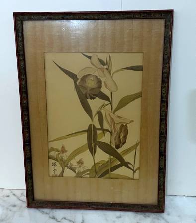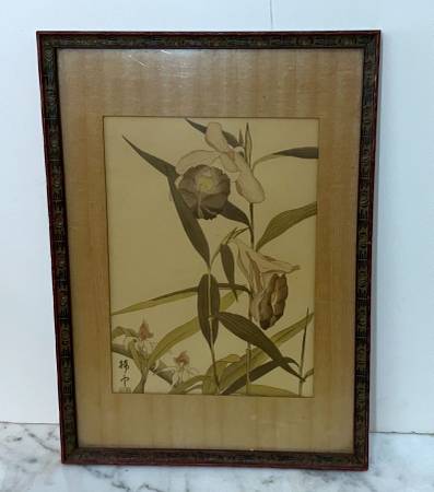 BEAUTIFUL ANTIQUE SIGNED AND FRAMED CHINESE FLORAL PRINT Size of frame: 15" x 11" Available for pick-up only 78th Street / 1st Avenue