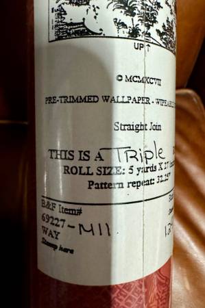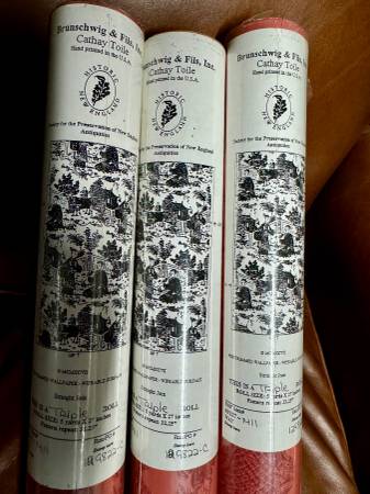3 Roll Cathay Toile Wallpaper Brunschwig & Fils Hand Printed in The USA. This is a triple roll,roll size 5 yards x 27 inches. Pattern repeats 32.25"