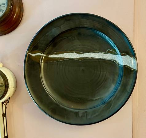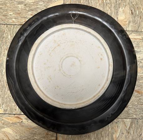 This is a real interesting Artwork. It's unique design with textured stripe will be a real conversation piece when hanging on your living room wall. This is a large ceramic pottery plate, hand thrown and painted. The glaze appears to be metallic. It had been hanging in my mom's Florida apartment for years. 17.5" in diameter. It's heavy - about 10 lbs. The artist name is Bolu, done in 1977, but I can't seem to find any information about him, and so the piece's provenance was lost with my mom's passing. All in all, it's a very cool piece of art. Could be a find!