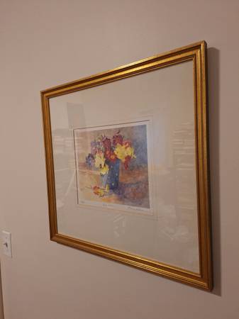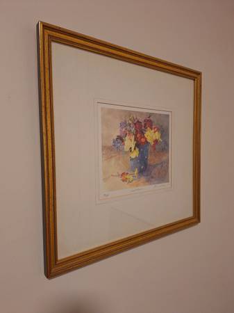 Framed watercolor print Signed & numbered # 285 / 850 Excellent condition. Frame measures: 21 3/4 inches wide 20 3/4 inches high