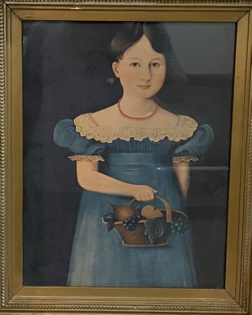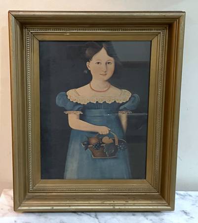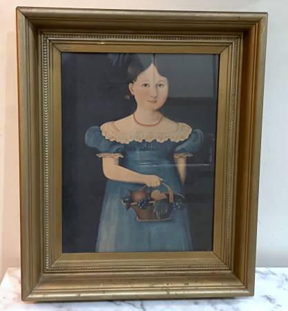 LARGE ANTIQUE LITHOGRAPH DEPICTING A GIRL WITH BASKET OF FRUITS - BEAUTIFULLY FRAMED I don't know the exact age of the print, but it is old. Beautiful classic frame. Sizes: (approx.) Art size: 15" x...