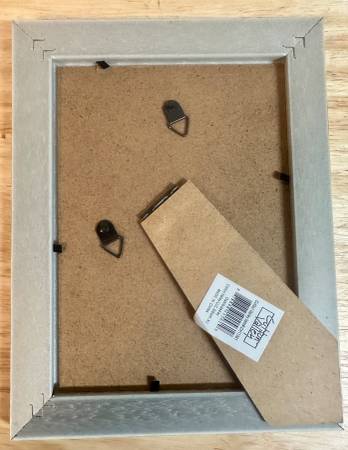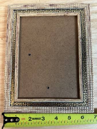 This is a lovely picture frame, made of light weight wood. Simple elegant gold border. I don't think it was ever used.
