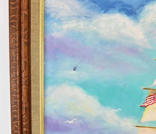 Canvas laid on board. A small half inch tear to the canvas on top left, as shown in pictures, otherwise in good condition