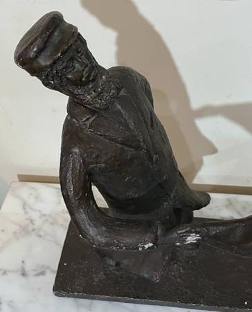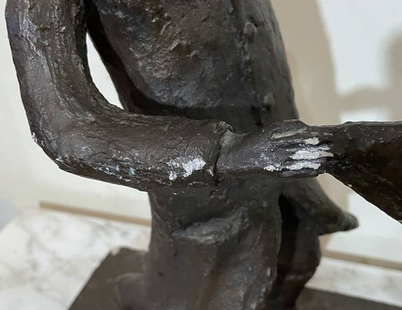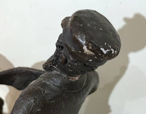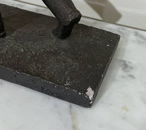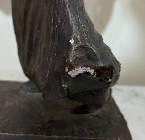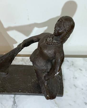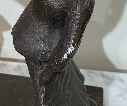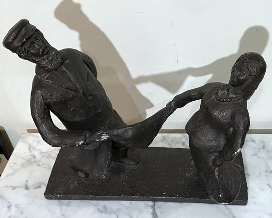 Statue has surface wear/rubbing throughout indicating patina loss, as shown in pictures. It appears to have a repair to male's neck. Please refer to photos, sold as is, heavy item.