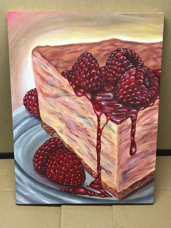 ‘Raspberry Dessert’ Original Painting Canvas Art for Sale.