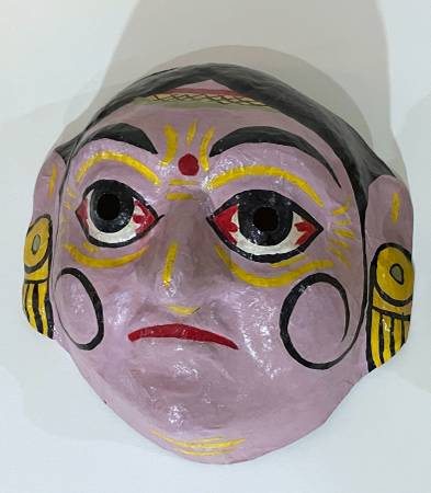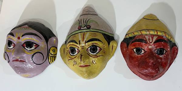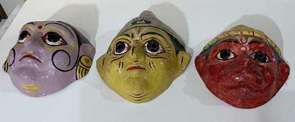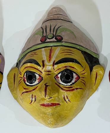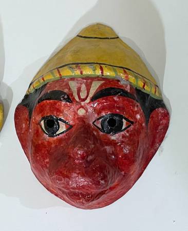 GROUP OF THREE (3) BEAUTIFUL VINTAGE HAND PAINTED PAPIER MACHE MASKS FROM INDIA All 3 for $95 Size (The largest: 11" tall 8" 5/8 wide 4" 3/8 deep CONDITION: Minor surface wear and paint loss, as...