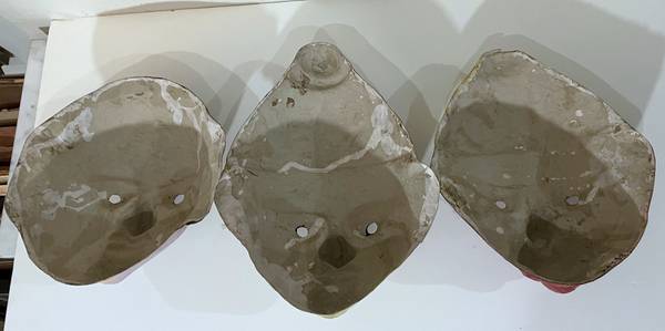 THREE (3) BEAUTIFUL VINTAGE HAND PAINTED PAPIER MACHE MASKS FROM...