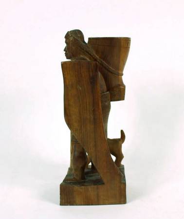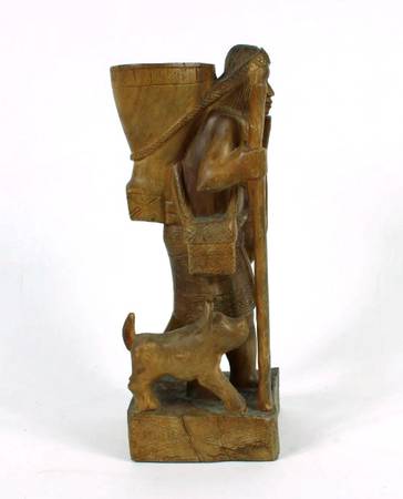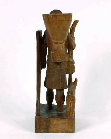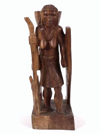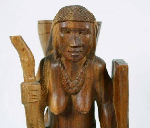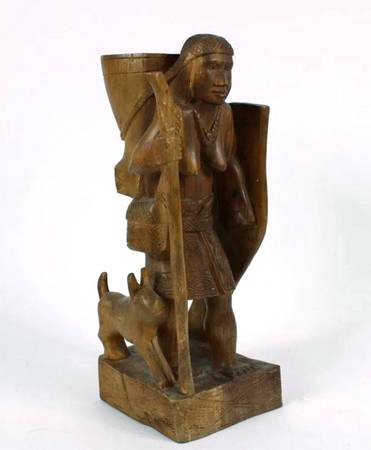 VINTAGE LATIN AMERICAN CARVED WOOD STATUE OF A FEMALE FIGURE AND DOG...