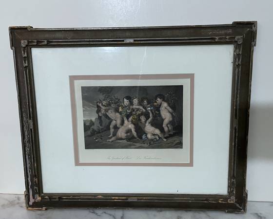VINTAGE PRINT "THE GARLAND OF FRUIT" BY A. H. PAYNE - AFTER RUBENS PAINTING Art size: 8" x 6" Frame size: 16" 1/2 x 13" 1/2 Condition: Print is in very good condition, Old frame has surface wear, as...